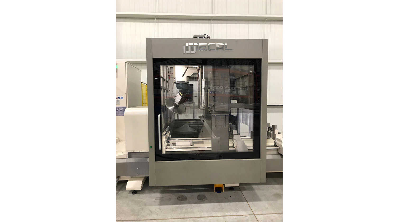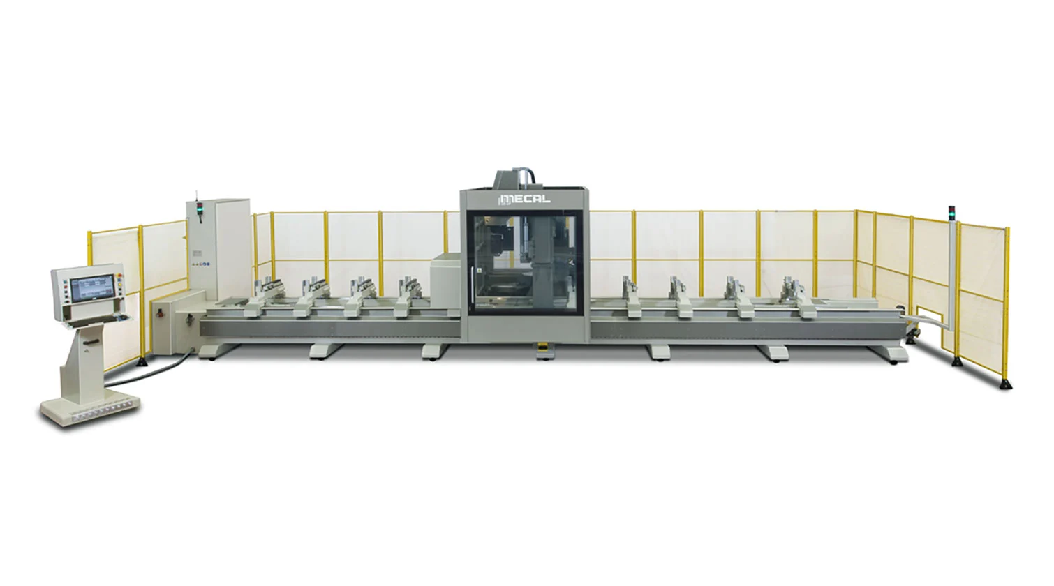 The Mecal Geos-5 is a heavy-duty 5-Axis Aluminum Profile Machining Centre designed to handle the largest and heaviest aluminum extrusions. Built on a rigid gantry structure and featuring a powerful 22 kW spindle option, it delivers uncompromising performance for demanding industrial applications. With its large-diameter 500 mm saw blade and massive tool capacity, the Geos-5 is engineered for power, precision, and productivity.