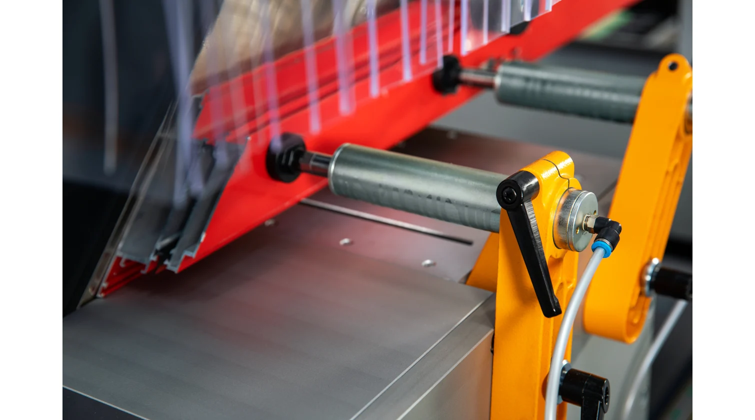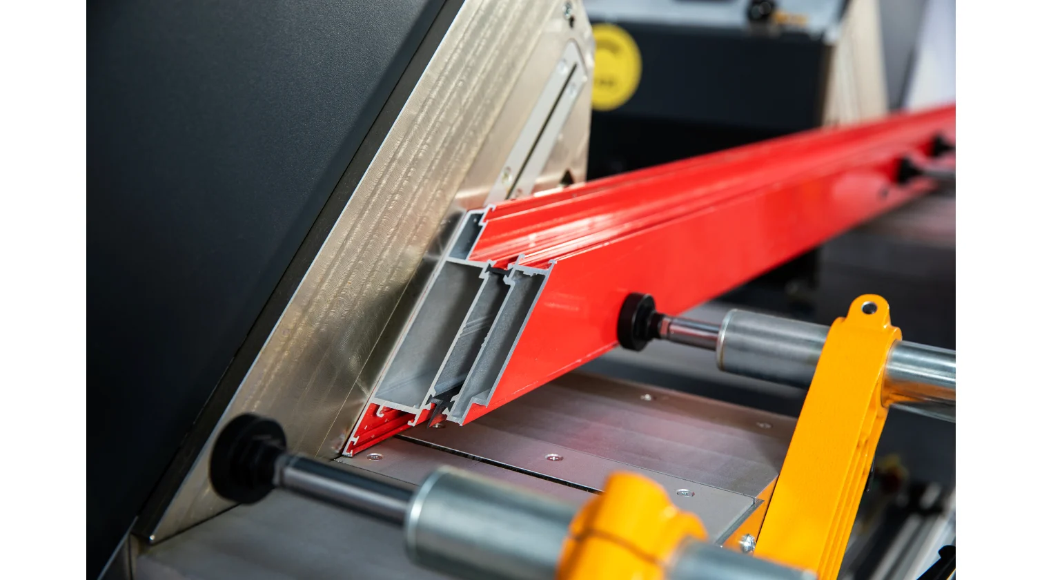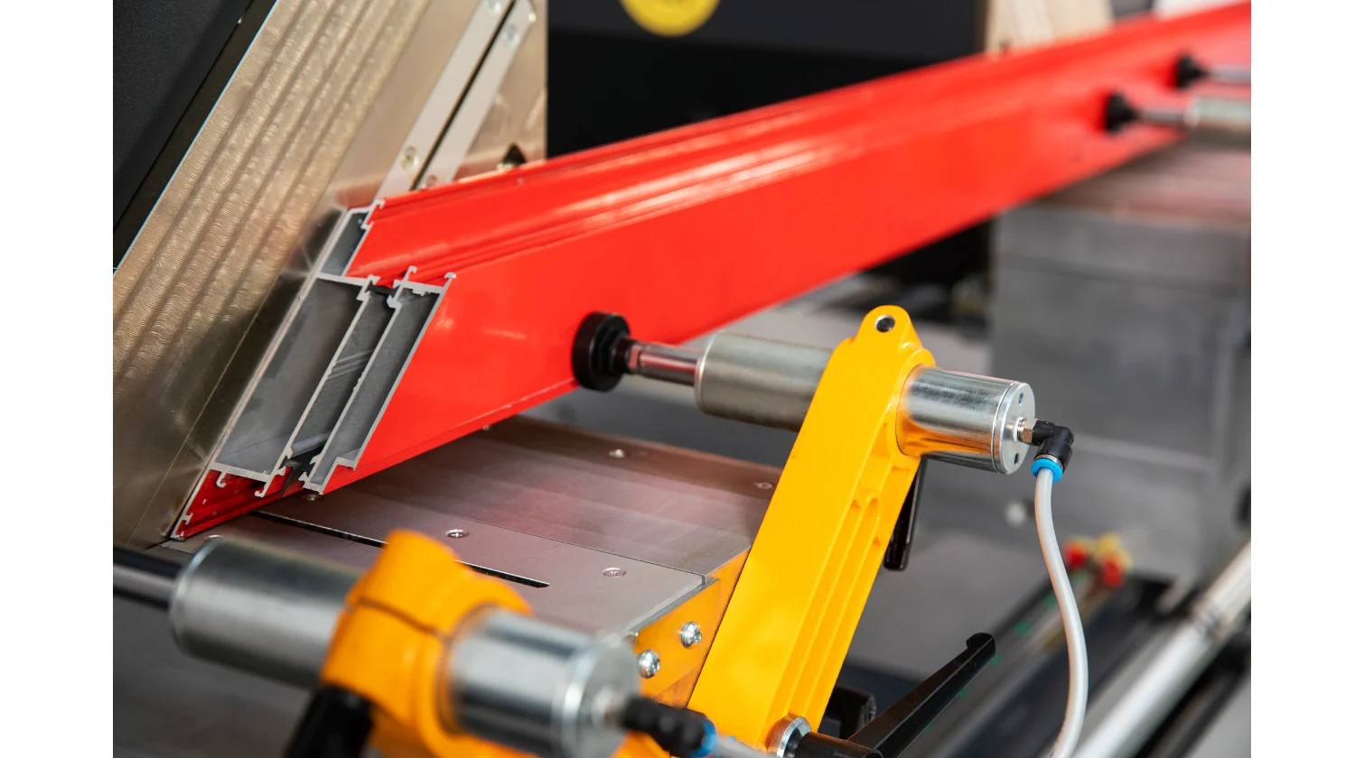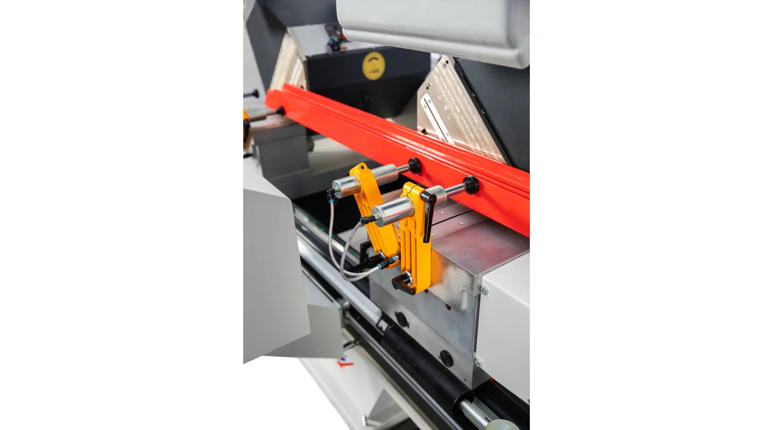 Les têtes de coupe sont munies de lames de 420 mm inclinables pneumatiquement à des angles fixes vers l’intérieur de 90° et 45°, avec un réglage manuel pour les angles intermédiaires. Cette configuration convient parfaitement aux besoins courants de fabrication, comme pour les fenêtres, portes et moustiquaires. La machine dispose également d’une fonction d’alimentation automatique des barres à 90° et 45°, et le déplacement hydro-pneumatique de la lame assure une coupe fluide et contrôlée pour une finition de haute qualité.