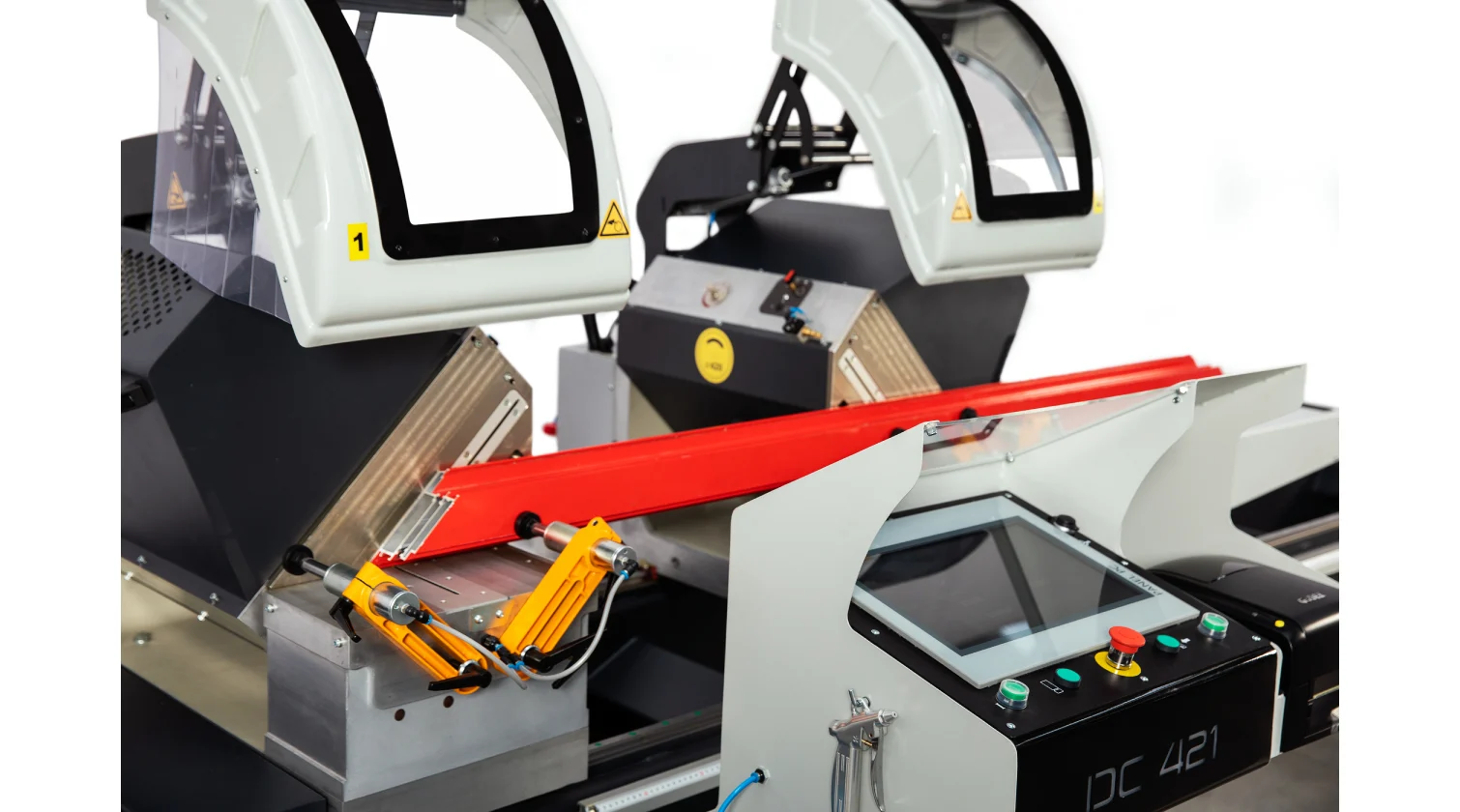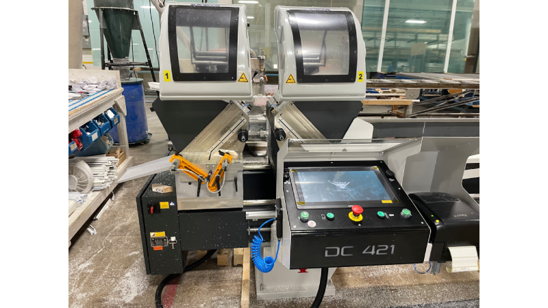 Le Yilmaz DC 421 est une scie à onglets double économique, conçue pour la coupe précise de profils en aluminium et PVC. Elle est équipée de lames de 420 mm sur des têtes pivotant vers l’intérieur jusqu’à 45°. Le DC 421 est disponible en deux versions automatisées : le modèle PSD avec un écran tactile de 9″ et transfert de données USB, et le modèle PBS avec un PC industriel de 15″ pour une intégration complète au réseau.