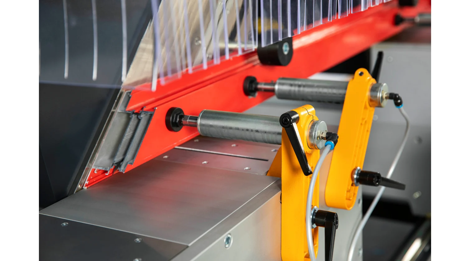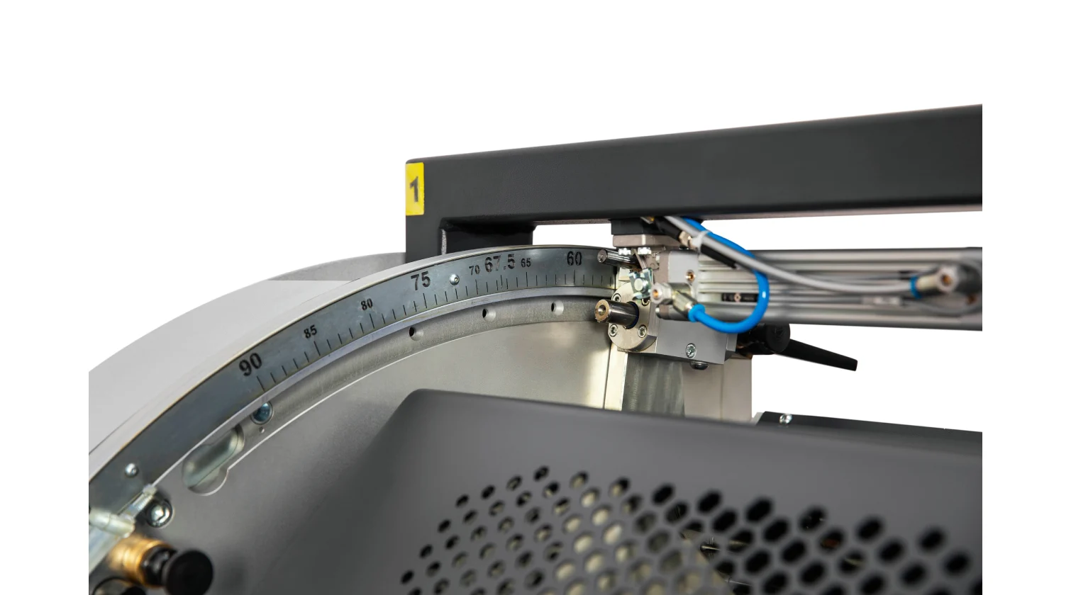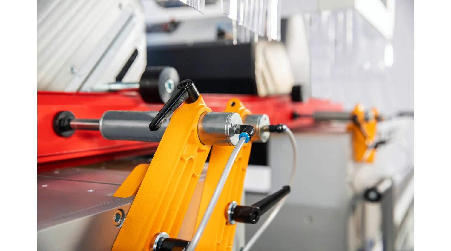 Les performances de la machine reposent sur ses têtes de coupe servo-commandées, équipées de lames de scie de 550 mm. Les têtes peuvent s’incliner automatiquement et avec précision à n’importe quel angle vers l’intérieur jusqu’à 45° et vers l’extérieur jusqu’à 22,5°. Une avance hydro-pneumatique de la lame garantit une coupe fluide et contrôlée pour une finition de haute qualité. L’ensemble du système est piloté par un PC industriel sous Windows avec écran tactile de 15", permettant le transfert de listes de coupe via USB ou réseau et offrant la possibilité d’un support technique à distance. Le modèle DC 550 SKH améliore encore l’automatisation grâce à un système de mesure de la hauteur du profilé en standard.