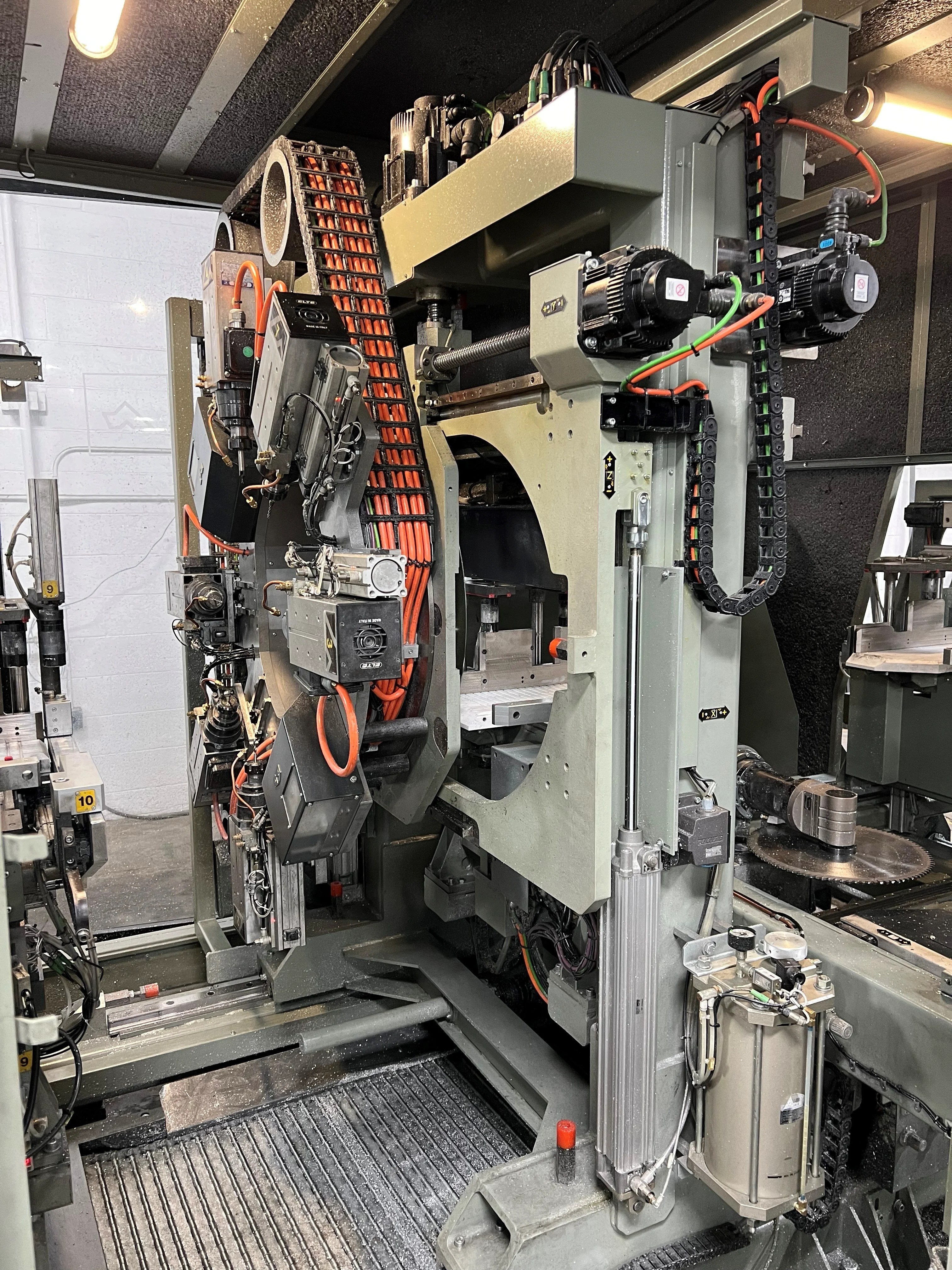 Le module principal de coupe est composé d’une lame de 600 mm de diamètre avec mouvement en descente sur trois axes CNC. Le module secondaire de coupe est équipé d’une lame de 350 mm de diamètre avec mouvements d’avance et de rotation sur un axe horizontal CNC. Le module de fraisage d’extrémité fonctionne sur deux axes CNC à l’aide d’un groupe de fraises.
