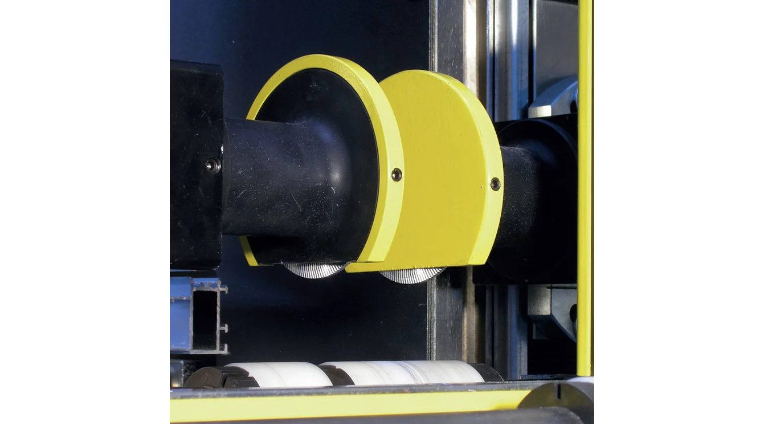 Le système utilise deux moteurs triphasés de 0,55 kW ainsi qu’un système d’avance des barres contrôlé par variateur de fréquence, garantissant une vitesse de traitement constante.