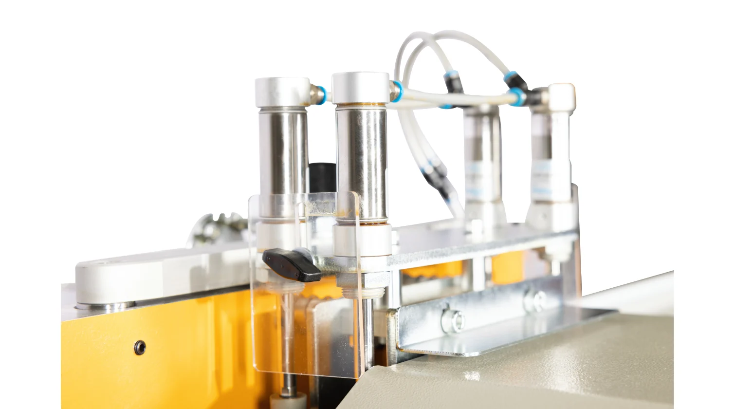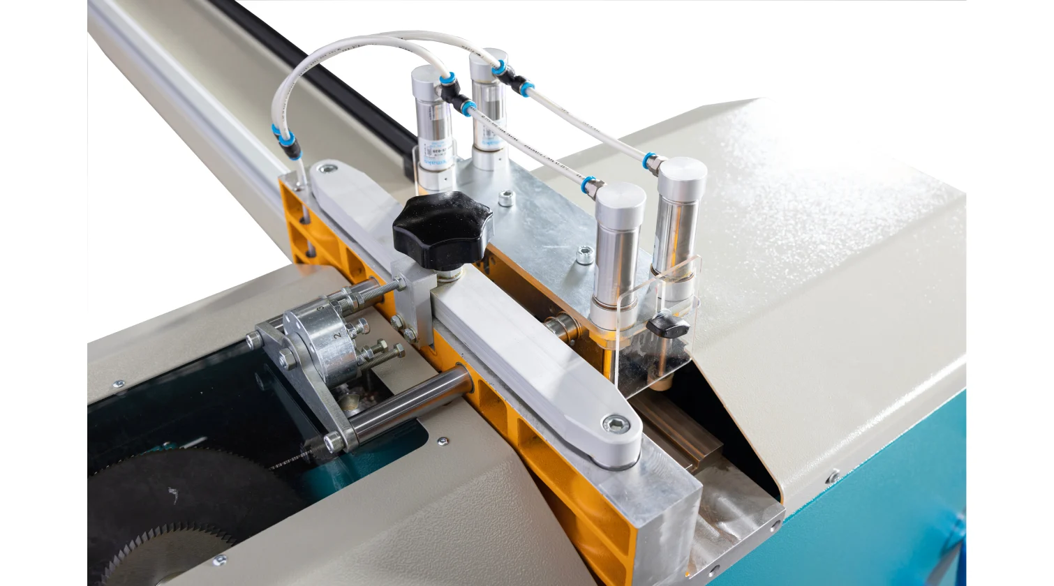 The CK 412 features a dual-blade horizontal design that allows users to cut glazing beads and similar PVC profiles with consistency. Thanks to the pneumatic blade feed and adjustable feed speed, the machine delivers a smooth cutting motion. Profiles are held securely in place by four pneumatic vertical clamps, ensuring stable cutting even when processing two profiles at once.