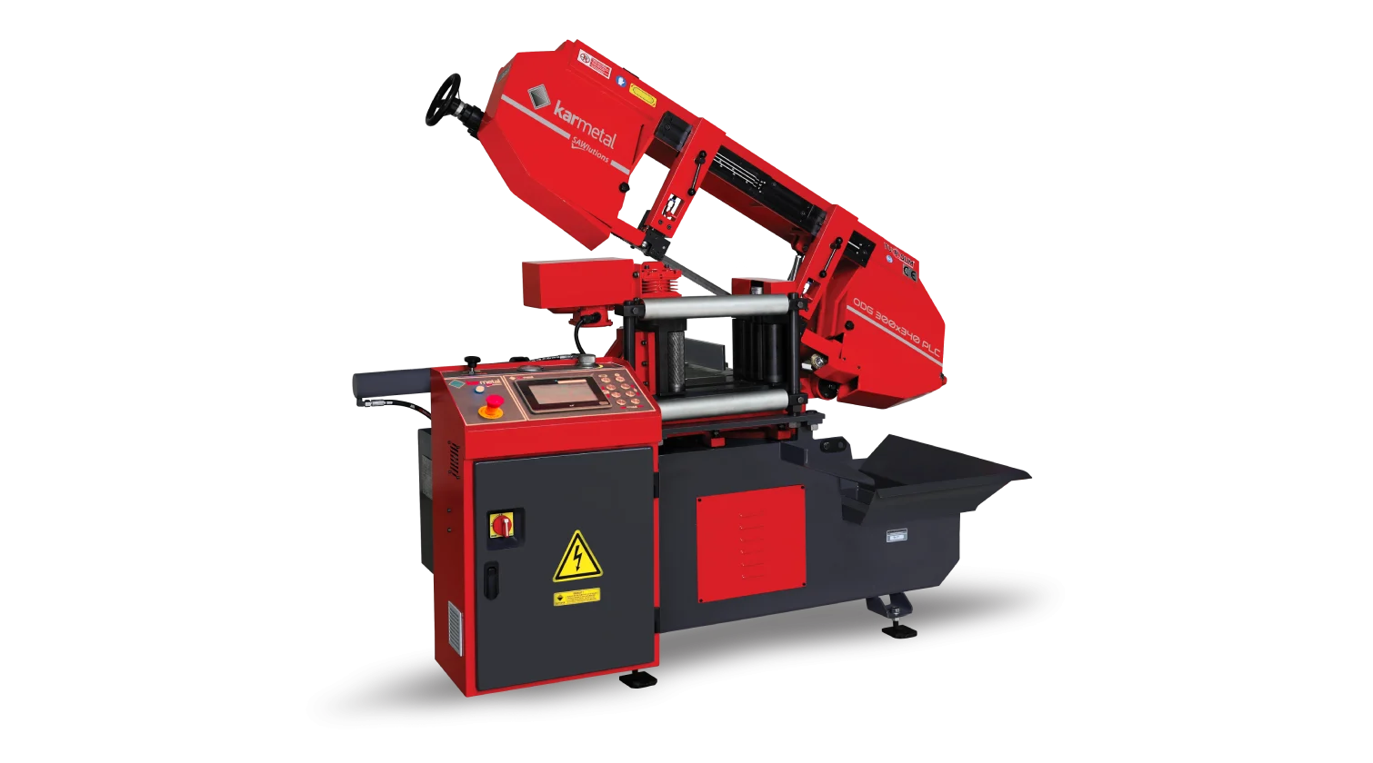 The Karmetal ODG 300×340 is a high-efficiency fully automatic bandsaw utilizing a pivot-style frame and an integrated roller feeder system. Engineered for users who need to make serial cuts in different lengths, it handles high-volume straight and miter cutting up to 60° left. The machine’s automated cycle manages material feeding and hydraulic clamping, ensuring maximum throughput with minimal manual intervention.