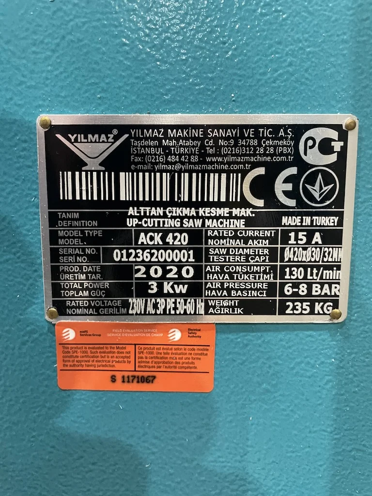 Your are about to inquire about Used Yilmaz “ACK 420” up cut mitre saw – year 2020